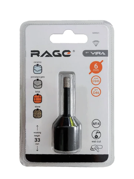 Коронка алмазная для УШМ по керамике 6 мм RAGE by VIRA