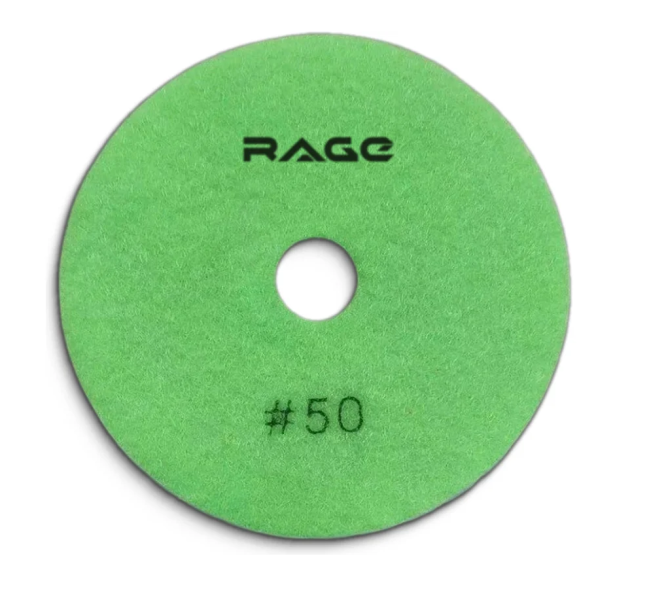 Круг шлифовальный алмазный RAGE by VIRA 100 мм P50. Абразивный круг из полимерной связки с алмазной крошкой предназначен для обработки всех разновидностей искусственного и натурального камня, включая высокопрочные породы, такие как мрамор и гранит. Данный тип хорошо подходит для выполнения точных работ. Круг легко устанавливается на опорную чашку и заменяется, по необходимости, на подобный или на круг с другой зернистостью благодаря креплению липучке.
