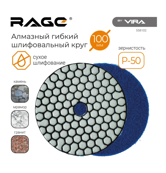 Технические характеристики алмазного гибкого шлифовального круга RAGE 558102