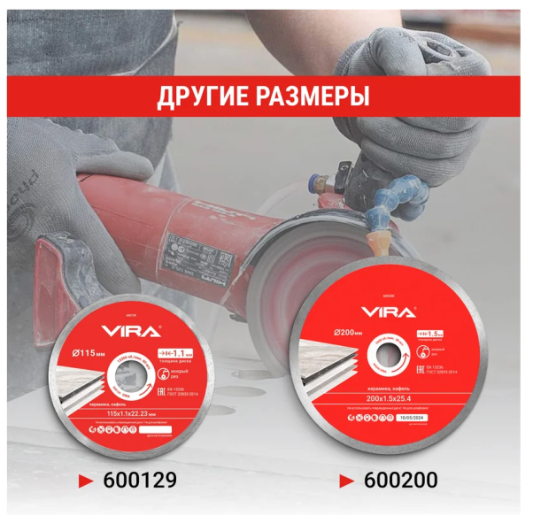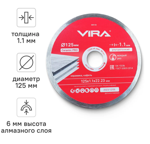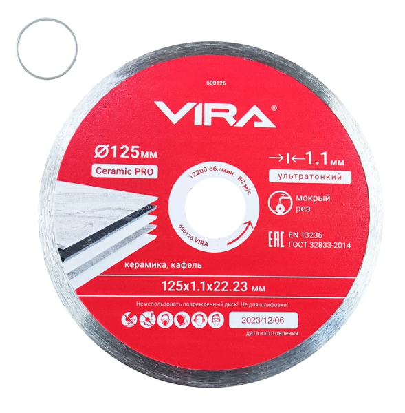 Технические характеристики диска алмазного по керамике VIRA 600126