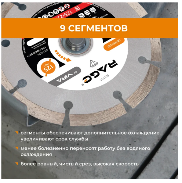 Технические характеристики сегментного алмазного диска RAGE 601125