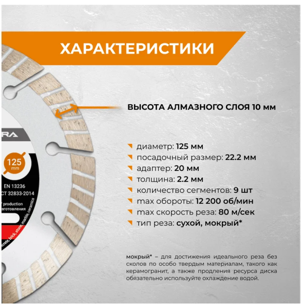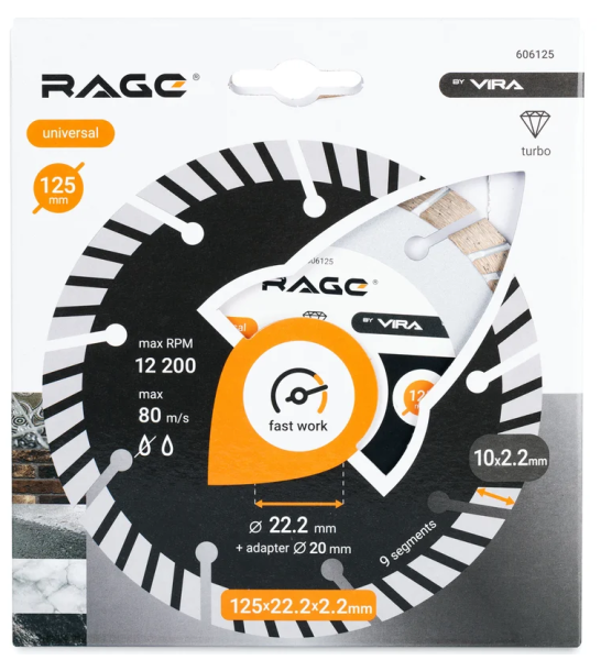 Технические характеристики сегментного алмазного диска RAGE 606125