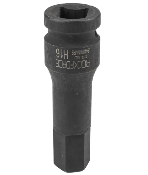 Головка-бита ударная 6-гранная 1/2" предназначена для монтажа и демонтажа крепежных элементов при помощи гайковерта или ключа. Размер шестигранника 16 мм. Головка изготовлена из прочной хромомолибденовой стали, которая обеспечивает долговечность и удароустойчивость инструмента. Может быть использована для монтажа и демонтажа болтов, гаек, шурупов и других крепежных элементов в различных отраслях промышленности, строительства и ремонта. Для использования головки-биты 6-гранной ударной необходимо установить ее на вороток, трещотку или гайковерт с посадочным квадратом 1/2" и начать вращать инструмент для откручивания или закручивания крепежного элемента.
