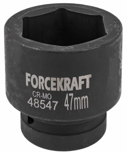 Торцевая головка ударная 47мм. Ударные торцевые головки с посадочным квадратом 1" шестигранные применяются как часть сборного инструмента в работе по обслуживанию экстремально нагруженных и крайне осложненных резьбовых соединений. Используется в тяжелой дорожной, строительной, сельскохозяйственной, горнодобывающей технике и оборудовании, при монтаже и обслуживании металлоконструкций строительных и инженерных сооружений и т.п. Материал изготовления Хром-Молибден.