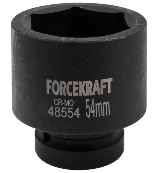 Торцевая головка ударная 54мм. Ударные торцевые головки с посадочным квадратом 1" шестигранные применяются как часть сборного инструмента в работе по обслуживанию экстремально нагруженных и крайне осложненных резьбовых соединений. Используется в тяжелой дорожной, строительной, сельскохозяйственной, горнодобывающей технике и оборудовании, при монтаже и обслуживании металлоконструкций строительных и инженерных сооружений и т.п. Материал изготовления Хром-Молибден.