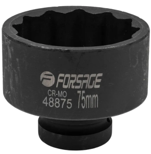 Торцевая головка ударная 75мм. Ударные торцевые головки с посадочным квадратом 1" применяются как часть сборного инструмента в работе по обслуживанию экстремально нагруженных и крайне осложненных резьбовых соединений. Головка имеет 12-гранный профиль, который позволяет работать как с шестигранным, так и двенадцатигранным крепежом, то есть является более универсальным и прекрасно подходят для работы в условиях ограниченного пространства, так как они надеваются на крепеж под большим количеством углов, чем шестигранные. Используется в тяжелой дорожной, строительной, сельскохозяйственной, горнодобывающей технике и оборудовании, при монтаже и обслуживании металлоконструкций строительных и инженерных сооружений и т.п. Материал изготовления Хром-Молибден.