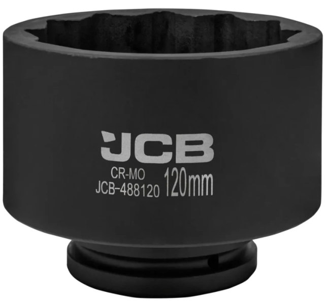 Головка ударная JCB 120 мм, 12-гранная, с посадочным квадратом 1" — это профессиональный инструмент, разработанный для эффективной работы с крупными крепёжными элементами под высокими нагрузками. Подходит для использования с пневматическими и ударными гайковёртами при обслуживании тяжёлой техники, спецтранспорта и в промышленности.