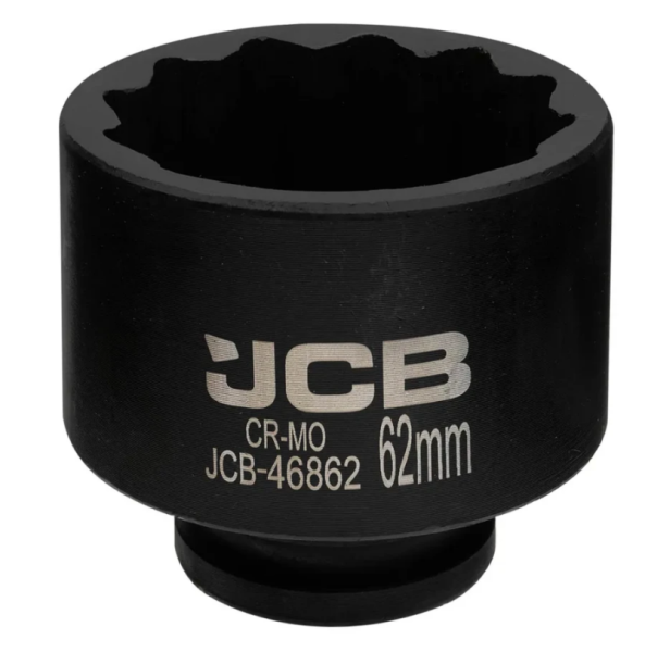 Торцевая головка ударная 62мм. Ударные торцевые головки с посадочным квадратом 3/4" применяются как часть сборного инструмента в работе по обслуживанию экстремально нагруженных и крайне осложненных резьбовых соединений. Головка имеет 12-гранный профиль, который позволяет работать как с шестигранным, так и двенадцатигранным крепежом, то есть является более универсальным и прекрасно подходят для работы в условиях ограниченного пространства, так как они надеваются на крепеж под большим количеством углов, чем шестигранные. Используется в тяжелой дорожной, строительной, сельскохозяйственной, горнодобывающей технике и оборудовании, при монтаже и обслуживании металлоконструкций строительных и инженерных сооружений и т.п. Материал изготовления Хром-Молибден.