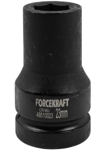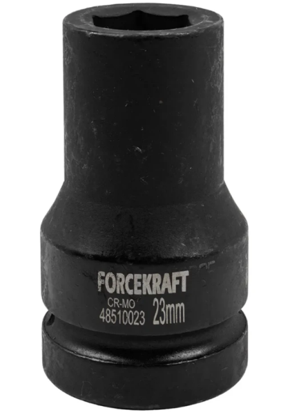 Торцевая головка ударная глубокая 23мм. Ударные торцевые головки с посадочным квадратом 1" шестигранные применяются как часть сборного инструмента в работе по обслуживанию экстремально нагруженных и крайне осложненных резьбовых соединений. Используется в тяжелой дорожной, строительной, сельскохозяйственной, горнодобывающей технике и оборудовании, при монтаже и обслуживании металлоконструкций строительных и инженерных сооружений и т.п. Удлиненные головки позволяют работать с крепежом, расположенных в углублениях или на длинных шпильках. Материал изготовления Хром-Молибден.