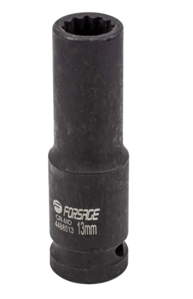 Головка ударная 13мм (12 граней),1/2" - это незаменимый инструмент для профессиональных механиков и автолюбителей. Головка изготовлена из высококачественной хромомолибденовой стали, что придает ей прочность и стойкость к интенсивному использованию. Головка имеет 12-гранный профиль, который обеспечивает прочное сцепление с болтами и гайками. Головка имеет удлиненную форму, что позволяет работать с крепежом, расположенным в углублениях или на длинных шпильках. Головка снабжена 1/2" квадратным приводом, что обеспечивает ее совместимость с различными ручными и пневматическими инструментами.