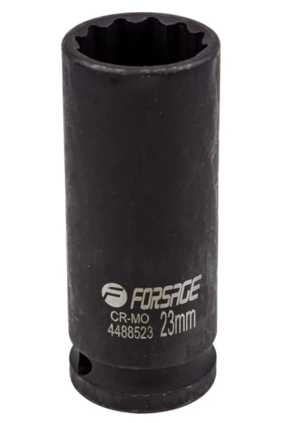 Головка ударная 23мм (12 граней),1/2" - это незаменимый инструмент для профессиональных механиков и автолюбителей. Головка изготовлена из высококачественной хромомолибденовой стали, что придает ей прочность и стойкость к интенсивному использованию. Головка имеет 12-гранный профиль, который обеспечивает прочное сцепление с болтами и гайками. Головка имеет удлиненную форму, что позволяет работать с крепежом, расположенным в углублениях или на длинных шпильках. Головка снабжена 1/2" квадратным приводом, что обеспечивает ее совместимость с различными ручными и пневматическими инструментами.