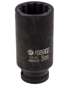 Головка ударная 26мм (12 граней),1/2" - это незаменимый инструмент для профессиональных механиков и автолюбителей. Головка изготовлена из высококачественной хромомолибденовой стали, что придает ей прочность и стойкость к интенсивному использованию. Головка имеет 12-гранный профиль, который обеспечивает прочное сцепление с болтами и гайками. Головка имеет удлиненную форму, что позволяет работать с крепежом, расположенным в углублениях или на длинных шпильках. Головка снабжена 1/2" квадратным приводом, что обеспечивает ее совместимость с различными ручными и пневматическими инструментами.