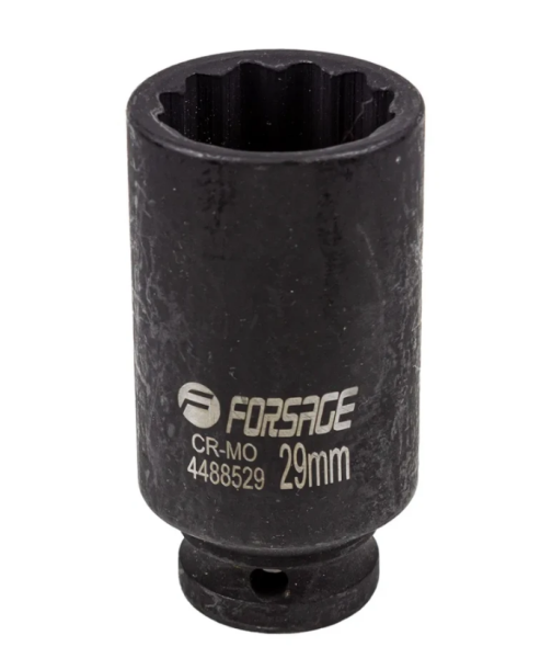 Головка ударная 29мм (12 граней),1/2" - это незаменимый инструмент для профессиональных механиков и автолюбителей. Головка изготовлена из высококачественной хромомолибденовой стали, что придает ей прочность и стойкость к интенсивному использованию. Головка имеет 12-гранный профиль, который обеспечивает прочное сцепление с болтами и гайками. Головка имеет удлиненную форму, что позволяет работать с крепежом, расположенным в углублениях или на длинных шпильках. Головка снабжена 1/2" квадратным приводом, что обеспечивает ее совместимость с различными ручными и пневматическими инструментами.