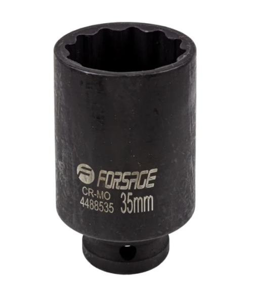 Головка ударная 35мм (12 граней),1/2" - это незаменимый инструмент для профессиональных механиков и автолюбителей. Головка изготовлена из высококачественной хромомолибденовой стали, что придает ей прочность и стойкость к интенсивному использованию. Головка имеет 12-гранный профиль, который обеспечивает прочное сцепление с болтами и гайками. Головка имеет удлиненную форму, что позволяет работать с крепежом, расположенным в углублениях или на длинных шпильках. Головка снабжена 1/2" квадратным приводом, что обеспечивает ее совместимость с различными ручными и пневматическими инструментами.