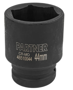 Торцевая головка ударная глубокая 44мм. Ударные торцевые головки с посадочным квадратом 1"шестигранные применяются как часть сборного инструмента в работе по обслуживанию экстремально нагруженных и крайне осложненных резьбовых соединений. Используется в тяжелой дорожной, строительной, сельскохозяйственной, горнодобывающей технике и оборудовании, при монтаже и обслуживании металлоконструкций строительных и инженерных сооружений и т.п. Удлиненные головки позволяют работать с крепежом, расположенных в углублениях или на длинных шпильках. Материал изготовления Хром-Молибден.