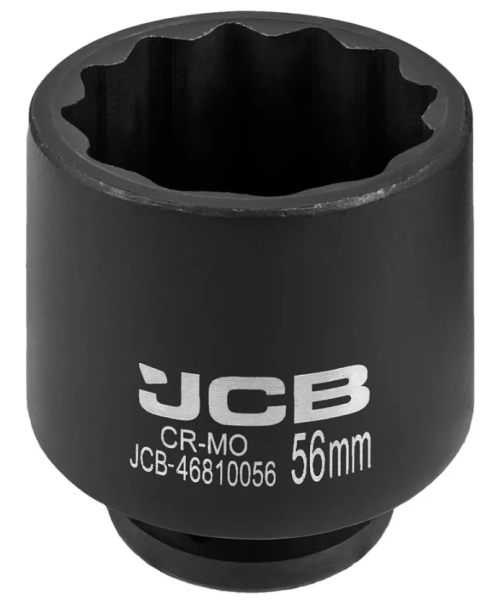 Торцевая головка ударная глубокая 56мм. Ударные торцевые головки с посадочным квадратом 3/4" применяются как часть сборного инструмента в работе по обслуживанию экстремально нагруженных и крайне осложненных резьбовых соединений. Головка имеет 12-гранный профиль, который позволяет работать как с шестигранным, так и двенадцатигранным крепежом, то есть является более универсальным и прекрасно подходят для работы в условиях ограниченного пространства, так как они надеваются на крепеж под большим количеством углов, чем шестигранные. Используется в тяжелой дорожной, строительной, сельскохозяйственной, горнодобывающей технике и оборудовании, при монтаже и обслуживании металлоконструкций строительных и инженерных сооружений и т.п. Удлиненные головки позволяют работать с крепежом, расположенных в углублениях или на длинных шпильках. Материал изготовления Хром-Молибден.