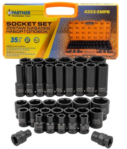 Головки ударные, набор 35пр., 1/2" (6гр.) 64597 PA-4353-5MPB