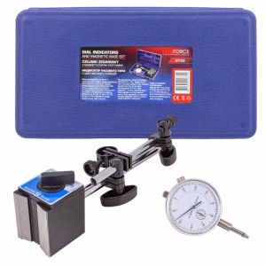 Индикатор часового типа – устройство для измерений и контроля отклонений от эталонной детали. Индикаторы без стойки не используют, так как опора придает дополнительную жесткость. Вам не надо покупать отдельно стойку, так как она идет в комплекте с индикатором. Стойку с магнитным основанием можно закреплять на горизонтальных, вертикальных или наклонных поверхностях для позиционирования измерительного устройства. Принцип действия действия часовых индикаторов основан на преобразовании линейного перемещения наконечника в соответственное перемещение стрелок циферблата. Индикатор широко применяется там, где необходим контроль горизонтальности и/или вертикальности положения плоскостей деталей, отклонения от плоскостности, параллельности, биения и т.д., служит для проверки качества в рамках стандартов и допусков на различных предприятиях – от автомобилестроения до частных мастерских. Диапазон измерений : 0 - 10 мм; Диаметр отверстия для крепления индикатора 4/8 мм; Размеры стойки d12 x 176 мм; Характеристика основания V-образное углубление; Вес : 2кг. Размеры основания 58 x 50 x 55 мм; Размеры измерительной руки d10 x 150 мм; Сила магнитного поля 600 N; Тип силы магнитного поля переключаемая; Размеры регулировочного винта M8 x 1.25; Цена деления 0,01мм. Для удобного хранения и перемещения, товар укомплектован в прочный пластиковый кейс.
