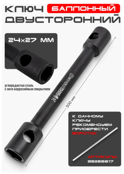 Многопрофильность. Ключ баллонный прямой с двумя рабочими шестигранными профилями 22х24 мм применяется на СТО, шиномонтаже и при самостоятельном обслуживании автомобиля. Длина: 300 мм.