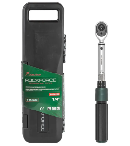 Ключ динамометрический щелчкового типа с быстрой фиксацией "Premium", 1/4", 1-25Нм применяется в сфере ремонта автомобилей, а также различных узлов, механизмов и деталей, в промышленности, строительной сфере и др. Трещоточный механизм имеет 72 зубца. Позволяет установить нужное усилие в правую и левую сторону. Применяется при затягивании крепежа с регулируемым значением крутящего момента. Износостойкая нескользящая удобная ручка. Присоединительный квадрат: 1/4"; Крутящий момент : 1-25 Нм; Правосторонний / Левосторонний; Изготовлен из хром-ванадиевой стали (CR-V); Для удобства хранения и транспортировки поставляется в крепком ударопрочном футляре.