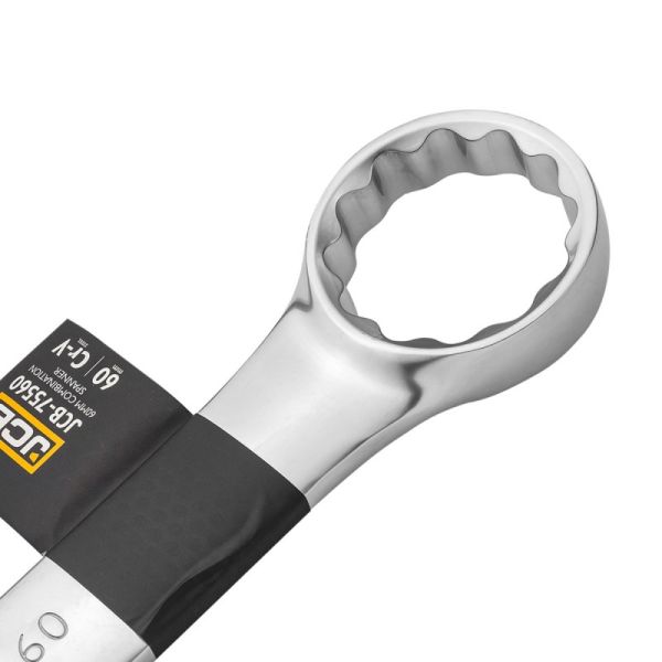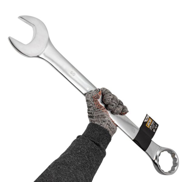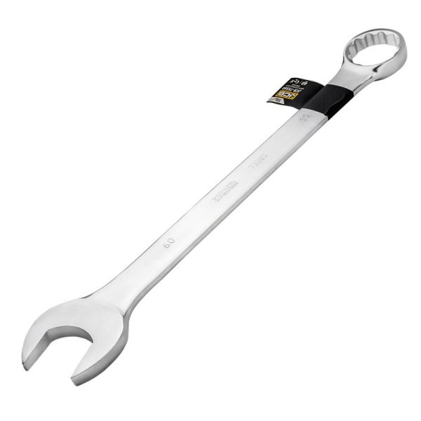 Ключ комбинированный рожково-накидной 60 мм предназначен для монтажа и демонтажа, а также для закручивания или раскручивания гаек, болтов и прочих крепежных изделий. Две рабочие стороны с накидным и рожковым профилем подходят для работы в самых труднодоступных местах. Рожковая сторона ключа предназначена для работ с крепежом, доступ к которому есть лишь с одной стороны, а накидная часть для проведения работ с высоко нагруженными резьбовыми соединениями. Накидная часть имеет 12 граней. Ключ изготовлен из высококачественной хромованадиевой стали, которая отличается устойчивостью к механическим нагрузкам.