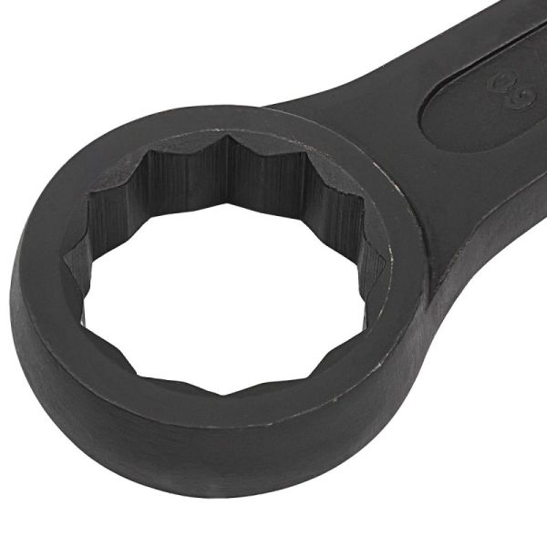 Ключ накидной ударный усиленный 60 мм односторонний используется для закручивания или раскручивания резьбовых соединений, в различных областях промышленности. Его усиленная конструкция позволяет использовать его в условиях, где нет возможности применить длинный рычаг. Ключ оснащен рукояткой с ударным концом, который не вибрирует и исключает возможность изгиба. Это обеспечивает точность и удобство при работе с инструментом. Рабочая поверхность предназначена для ударных воздействий с целью увеличения усилия при работе с тугими крепежными соединениями, с его помощью можно выкручивать и закручивать резьбовые крепежные элементы. Изготовлен из высокопрочного хромомолибденового сплава (Cro-Mo). Отличается износостойкостью, антикоррозийными свойствами.
