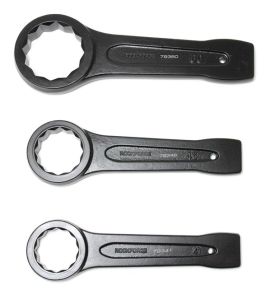 Ключ накидной ударный усиленный 95 мм односторонний используется для закручивания или раскручивания резьбовых соединений, в различных областях промышленности. Его усиленная конструкция позволяет использовать его в условиях, где нет возможности применить длинный рычаг. Ключ оснащен рукояткой с ударным концом, который не вибрирует и исключает возможность изгиба. Это обеспечивает точность и удобство при работе с инструментом. Рабочая поверхность предназначена для ударных воздействий с целью увеличения усилия при работе с тугими крепежными соединениями, с его помощью можно выкручивать и закручивать резьбовые крепежные элементы. Изготовлен из высокопрочного хромомолибденового сплава (Cro-Mo). Отличается износостойкостью, антикоррозийными свойствами.