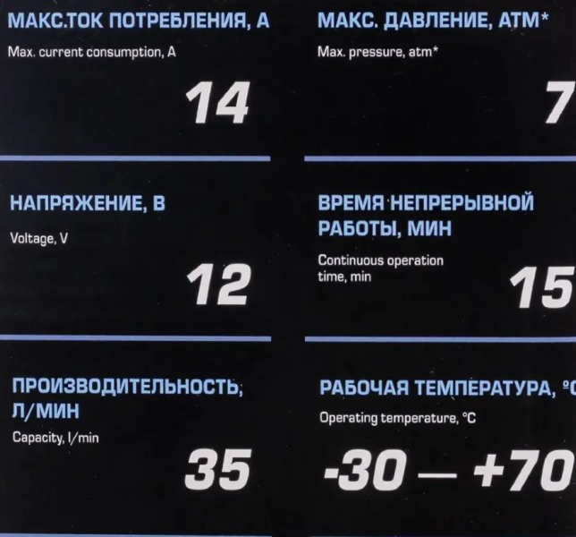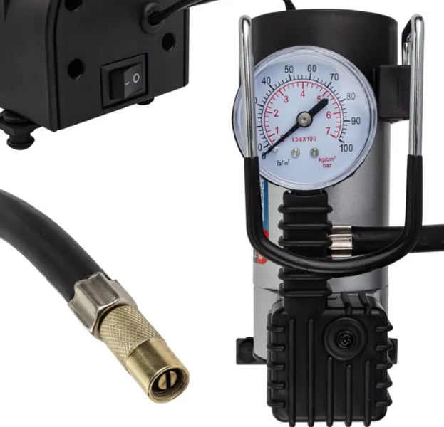 Автомобильный поршневой компрессор - незаменимый инструмент, который поможет вам путешествовать с комфортом. Основные детали корпуса и подшипники выполнены из металла, обеспечивая надежность и длительный срок службы поршневого компрессора. В комплекте есть 3 сменные насадки для подкачки резиновых лодок, надувных матрасов и мячей. Штуцер на шланге винтовой высокого давления. В комплект также входит тканевая сумка для удобной транспортировки и хранения компрессора, а также для защиты от механических повреждений. Технические характеристики: Питание от автомобильной сети 12В (прикуриватель); Максимальное давление, атм (кг/см2): 7; Производительность, л/мин: 35; Время непрерывной работы : 15 минут; Максимальный ток потребления : 14 А; Рабочая температура : -30°- +70°.