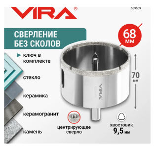 Коронка алмазная по керамике VIRA 68 мм трехгранный хвостовик