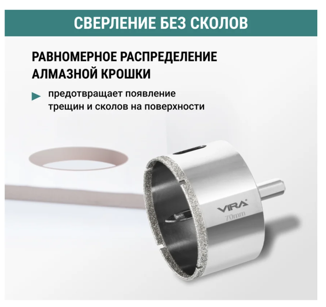 Коронка алмазная по керамике VIRA 70 мм трехгранный хвостовик