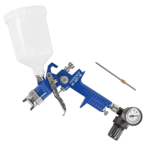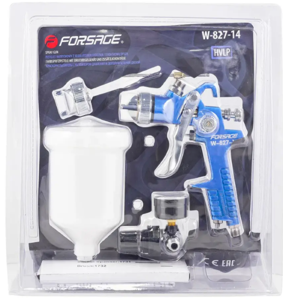 Краскораспылитель с верхним пластиковым бачком, регулятором давления и доп.-ой дюзой (600мл, 1.4/1.7мм, 2.0 - 4.0 Bar, факел 180-250мм, 400л/мин). Краскораспылители являются одним из наиболее распространенных инструментов для нанесения красок на различные поверхности. Они позволяют равномерно наносить краску на поверхность, что обеспечивает высокое качество покрытия и экономию времени. Краскораспылитель имеет следующие характеристики: - Верхний пластиковый бачок - это означает, что краска подается в краскопульт через верхний клапан, что облегчает процесс заправки и обеспечивает более точное дозирование краски. - Регулятор давления - позволяет настроить давление воздуха, что влияет на скорость распыления и качество покрытия. - Дополнительная дюза - это сменная насадка, которая позволяет изменять форму факела и регулировать ширину распыления. Факел 180 - 250 мм. 400 л/мин - это производительность краскораспылителя, которая измеряется в литрах в минуту.