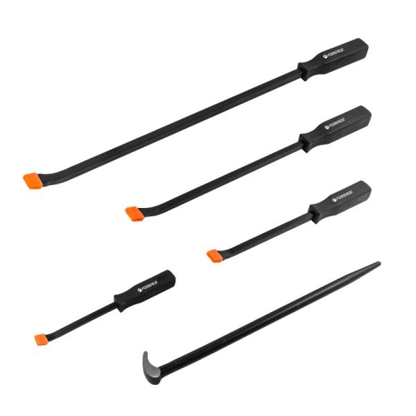 Комплект монтировок с прорезиненными рукоятками 5 предметов в блистере предназначен для демонтажа различных механизмов, конструкций, деталей. Комплект включает в себя три монтировки разных размеров, которые позволяют выполнять различные виды работ: монтировка 200 мм; монтировка 300 мм; монтировка 400 мм; монтировка 460 мм; монтировка 610 мм. Монтировки имеют угловой кончик, который обеспечивает дополнительную точку рычага для работы на узких участках, а заостренные концы легко помещаются между соединяемыми деталями, стержни имеют квадратное сечение для более удобной работы. На конце рукоятки имеется стальной затыльник для ударных нагрузок. Стержень прокован через рукоятку, что позволяет наносить удары по инструменту, не повреждая рукоятку. Эргономичная форма рукоятки позволяет избежать усталости рук и обеспечивает комфорт при длительном использовании монтировок. Инструменты выполнены из высококачественной стали с оскидированным покрытием, не подвержены деформациям, точно и полно передает усилие в рабочую зону. Набор монтировок может быть использован как профессионалами, так и любителями для выполнения различных монтажных работ.
