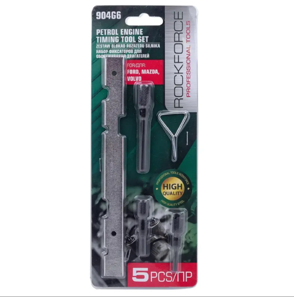 Набор фиксаторов FORD/MAZDA/VOLVO 5 предметов в блистере предназначен для регулировки фаз ГРМ широкого модельного ряда автомобилей Ford. Различные типы двигателей, как с бензиновым, так и дизельным впрыском. Также набор можно использовать на некоторых моделях VOLVO и MAZDA. Комплектация: Установочная планка для распределительных валов OEM номер: 21-162B / 303-376 / 303-376B. Фиксатор коленчатого вала OEM номер: 21-210 / 303-507. Фиксатор коленчатого вала OEM номер: 21-163 / 303-574. Фиксатор коленчатого вала OEM номер: 21-259 / 303-748. Применение набора фиксаторов FORD : Последние модели двигателей FORD HWDA/HWDB/HXDA. Фиксатор коленвала Ford 303-748 (21-259) для Focus/C-Max 1.6, 1.4/1.6 и Fiesta/Fusion 1.24/1.4/1.6. Также модели Volvo с мотором 1.8/2.0 L. Регулировочная пластина для распредвала OEM 303-376B. Комплектация набора фиксаторов для Ford : фиксатор коленвала, фиксатор коленвала, фиксатор распредвала Применяются для следующих марок автомобилей: FORD Fiesta, Puma, Focus, Focus C-MAX, Escort, Orion, Mondeo, Cougar, Courier, Tourneo, Transit, Fusion, Connect (93-10r.): двигатели с ремнём и с цепью ГРМ : 1,25 / 1,4 / 1,6 / 1,8 / 2,0 16V. Коды двигателей: ALDA, AOBA, AOBC, AODA, AODB, AODE, AOWA, AOWB, ASDA, ASDB, CDBB, CGBA, CGBB, CHBA, CHBB, CJBA, CJBB, CSDA, CSDB, DHA, DHB, DHC, DHD, DHE, DHF, DHG, DYDF, EDBA, EDBB, EDBC, EDBD, EDDB, EDDC, EDDD, EDDF, EYDB, EYDC, EYDD, EYDE, EYDF, EYDG, EYDI, EYDJ, EYDL, EYPA, EYPC, F8JA, F8JB, FHA, FHB, FHD, FHF, FUJA, FUJB, FXDA, FXDB, FXDC, FXDD, FXJA, FXJB, FXJC, FYDA, FYDB, FYDC, FYDD, FYDH, FYJA, FYJB, FYJC, GZ, GZFA, GZFB, GZFC, HMDA, HWDA, HWDB, L1F, L1J, L1L, L1N, L1Q, L1T, L1V, L1W, M7JA, M7JB, N4JB, NGA, NGB, NGC, NGD, Q7DA, QQDA, QQDB, QQDC, RKA, RKB, RKF, RKH, RKJ, RKK, RTJA, RTJB, SEBA, SEWA, SHDA, SHDB, SHDC, SNJA, SNJB, SPJA, SPJC, STJA, STJB, SYDA, TBBA, TBBB, TBWA, TBWB, UTJA, YF. MAZDA 121 (95-00), 2 (02-07), 3 (03-), 5 (05-), 6 (02-), MX-5 (05-), MPV (02-05).