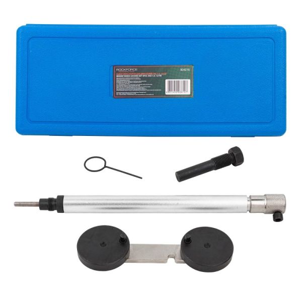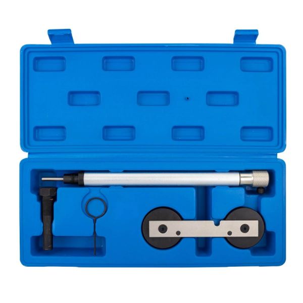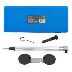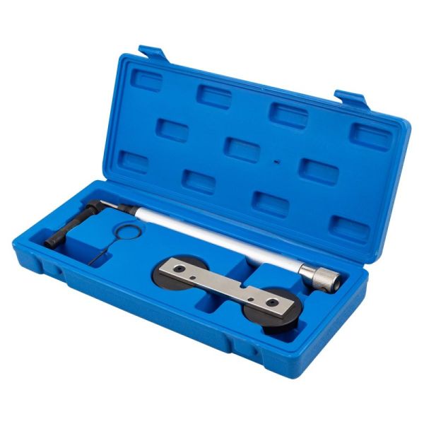 Набор фиксаторов для двигателей VAG (1.4, 1.6 FSI, 1.4TSI), 4 предмета в кейсе. Подходит для автомобилей: Audi A3 1.6 FSI модификация двигателя BAG (с 2003 г. в.). Volkswagen Polo 1.4 FSI модификация двигателя AXU (с 2002 года). Volkswagen Golf 1.4/1.6 FSI модификации двигателя BAG, BKG, BLF, BLN, BLP (с 2003 года). Volkswagen Passat 1.6 FSI модификация двигателя BLF (с 2005 года). Volkswagen Touran 1.6 FSI модификация двигателя BAG, BLP (с 2003 года). Комплектация: фиксатор распредвала VAG OEM - T10171, индикаторная стойка (адаптер) VAG Т10170, стопор T40011/T20046 для плунжера натяжителя, фиксатор коленвала VW T10340, кейс. Для удобства хранения и транспортировки поставляется в пластиковом кейсе.
