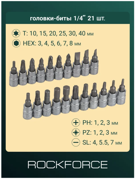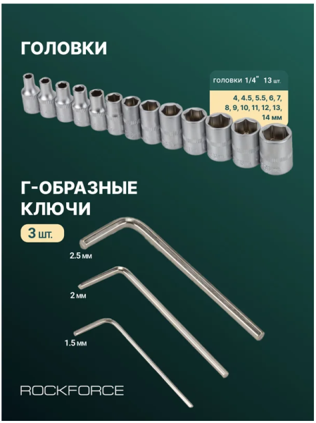 головки 1/4"короткие 25 мм: 4, 4.5, 5, 5.5, 6, 7, 8, 9, 10, 11, 12, 13, 14 мм;