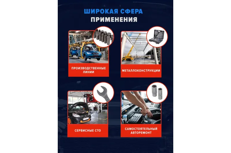 головки 1/2"короткие 38 мм: 14, 15, 16, 17, 18, 19, 20, 22, 24, 27, 30, 32 мм;