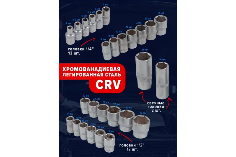 головки свечные 1/2": 16, 21 мм;