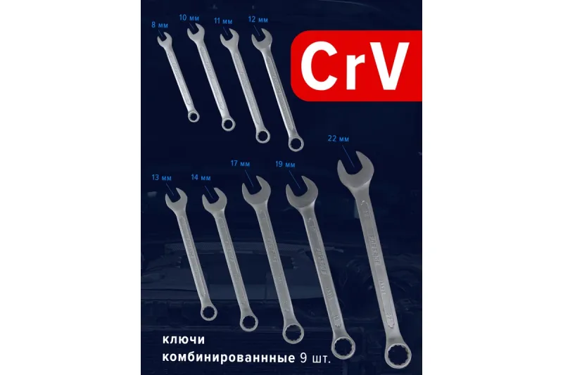 ключи комбинированные рожково-накидные: 8, 10, 12, 13, 14, 15, 16, 17, 19 мм.
