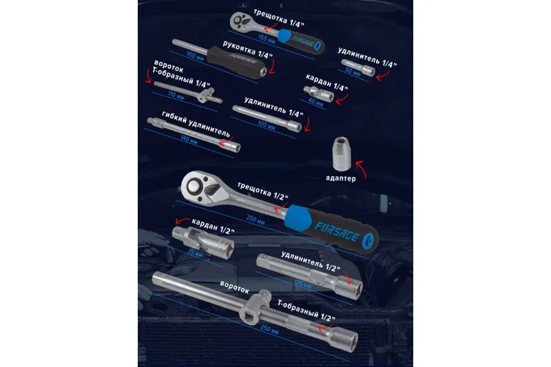 удлинители 1/4": 50, 100 мм;