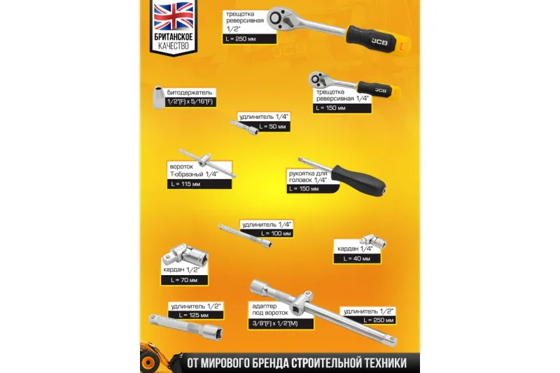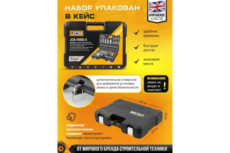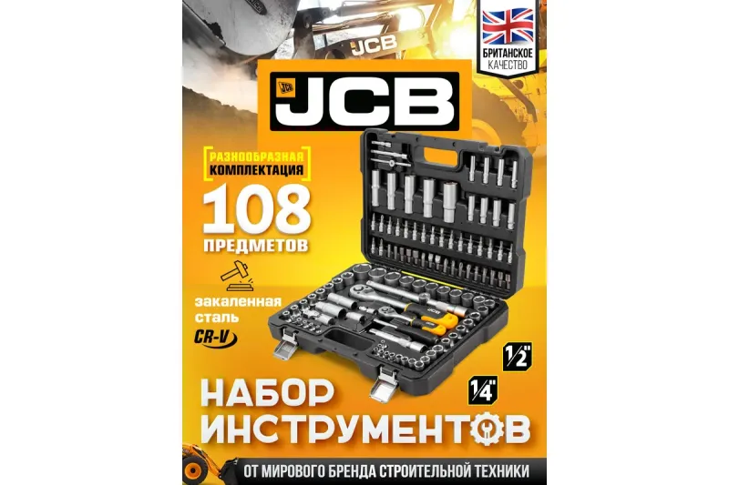 Набор инструментов от бренда JCB из 108 предметов в кейсе функциональный комплект инструментов премиум класса, который обязательно порадует любого автолюбителя.
