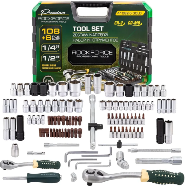 Набор инструментов 108+6пр. 1/4" 1/2" 6pt 62163 RF-41082-5 GOLD