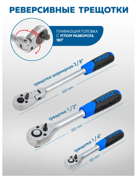 Эффективность работы: Трещотка с легким изменением направления позволяет эффективно работать в ограниченных пространствах, ускоряя процесс ремонта.
