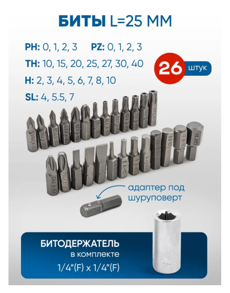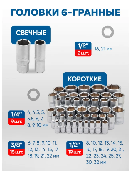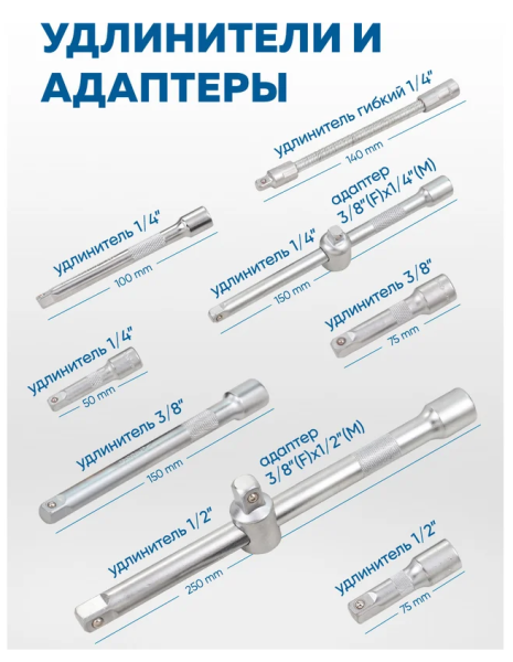 Размер посадки головки - 1/4; 1/2; 3/8 дюйма