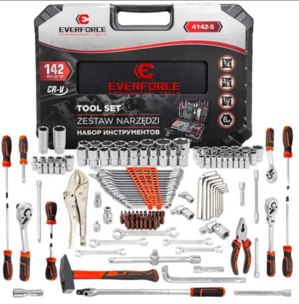 Набор инструментов 142пр. 1/4" 3/8" 1/2" 6гр 64296 EF-4142-5(EF-41421-5)
