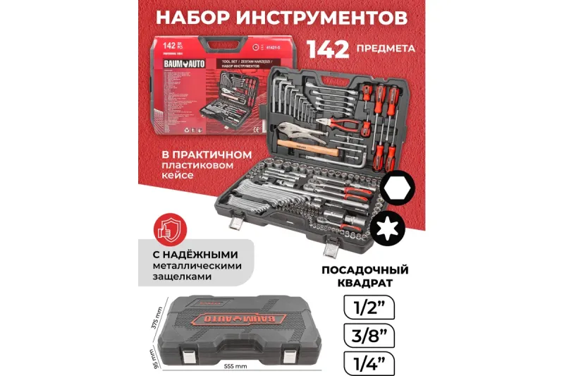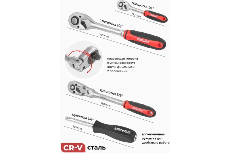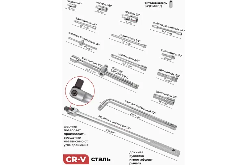 Посадочный квадрат: 1/4", 3/8", 1/2".
