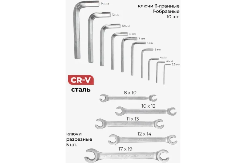 ключи разрезные: 8*10, 10*12, 11*13, 12*14, 17*19;