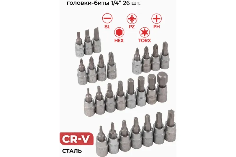 головки 1/4"Е-профиль 25 мм: Е4, Е5, Е6, Е7, Е8;