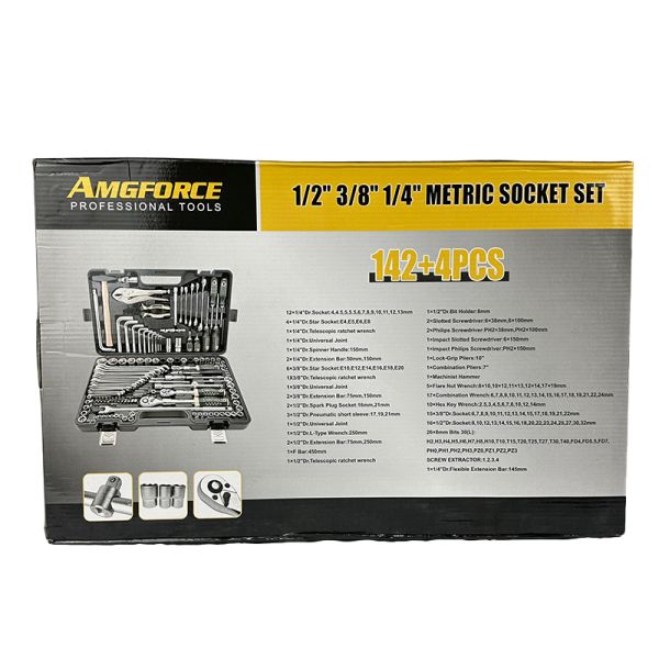 Набор инструментов 146пр. 1/4''3/8''1/2''(6гр.)(4-32мм) + телескоп трещотка AMG006 AMG-146L775