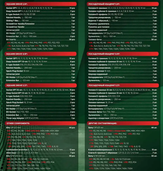 Набор инструментов 216пр. 1/4", 3/8", 1/2" (6гр.,12гр.) 64710 RF-38841W Premium