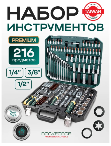 Набор инструментов от бренда Rockforce Premium из 216 предметов. Это Ваш лучший выбор для профессиональной работы и домашнего мастерства!